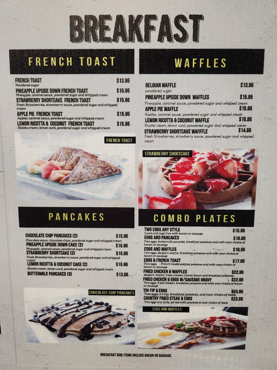 For those who enjoy their breakfast wrapped in a warm tortilla, don’t miss the Chorizo Breakfast Burrito. Packed with fluffy eggs, spicy chorizo, and crispy breakfast potatoes, this burrito bursts with flavor and zest, all for just US$15.95. The combination of melting cheese and fresh salsa elevates this dish to a whole new level of deliciousness.
